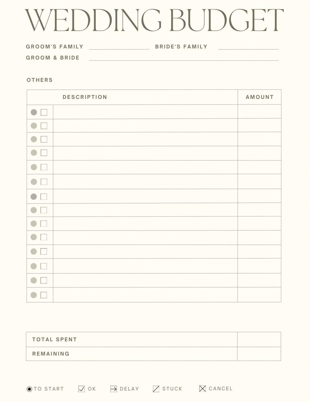 The Wedding Budget Planner is a comprehensive and user-friendly tool designed to help engaged couples manage their wedding expenses effectively. This freebie offers a downloadable and printable spreadsheet with customizable categories, such as venue, catering, attire, decorations, and more. It allows you to set budget limits for each category, track expenses, and monitor your spending throughout the planning process. With this valuable resource, you can stay organized, make informed decisions, and ensure your special day remains within your financial means. Happy planning
