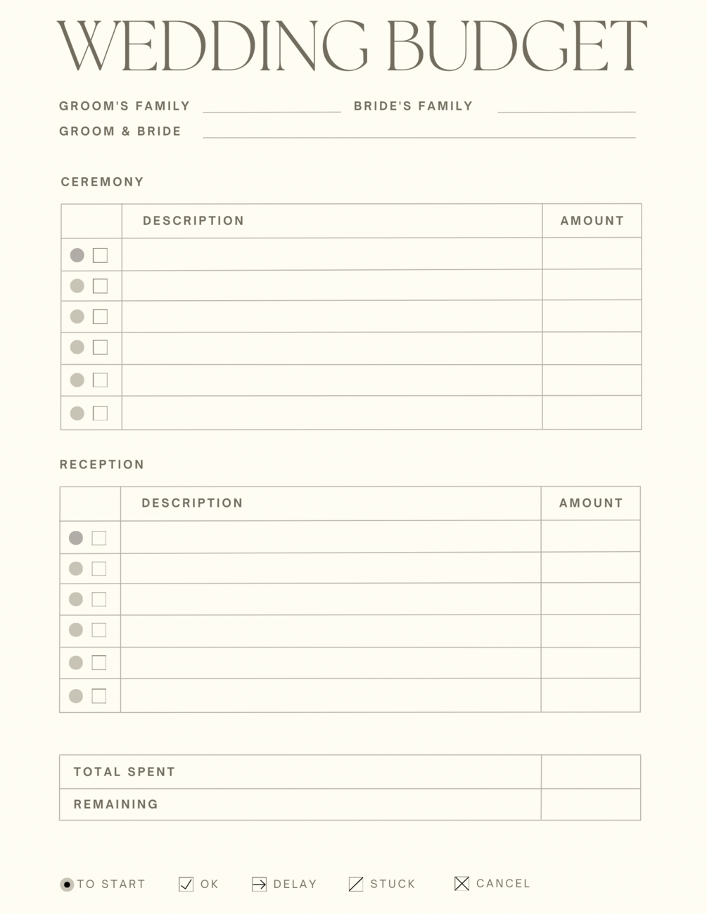 The Wedding Budget Planner is a comprehensive and user-friendly tool designed to help engaged couples manage their wedding expenses effectively. This freebie offers a downloadable and printable spreadsheet with customizable categories, such as venue, catering, attire, decorations, and more. It allows you to set budget limits for each category, track expenses, and monitor your spending throughout the planning process. With this valuable resource, you can stay organized, make informed decisions, and ensure your special day remains within your financial means. Happy planning